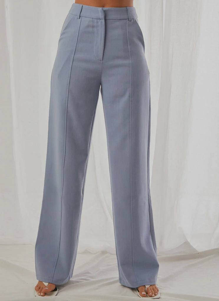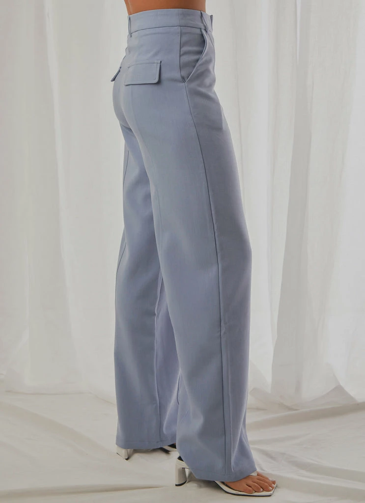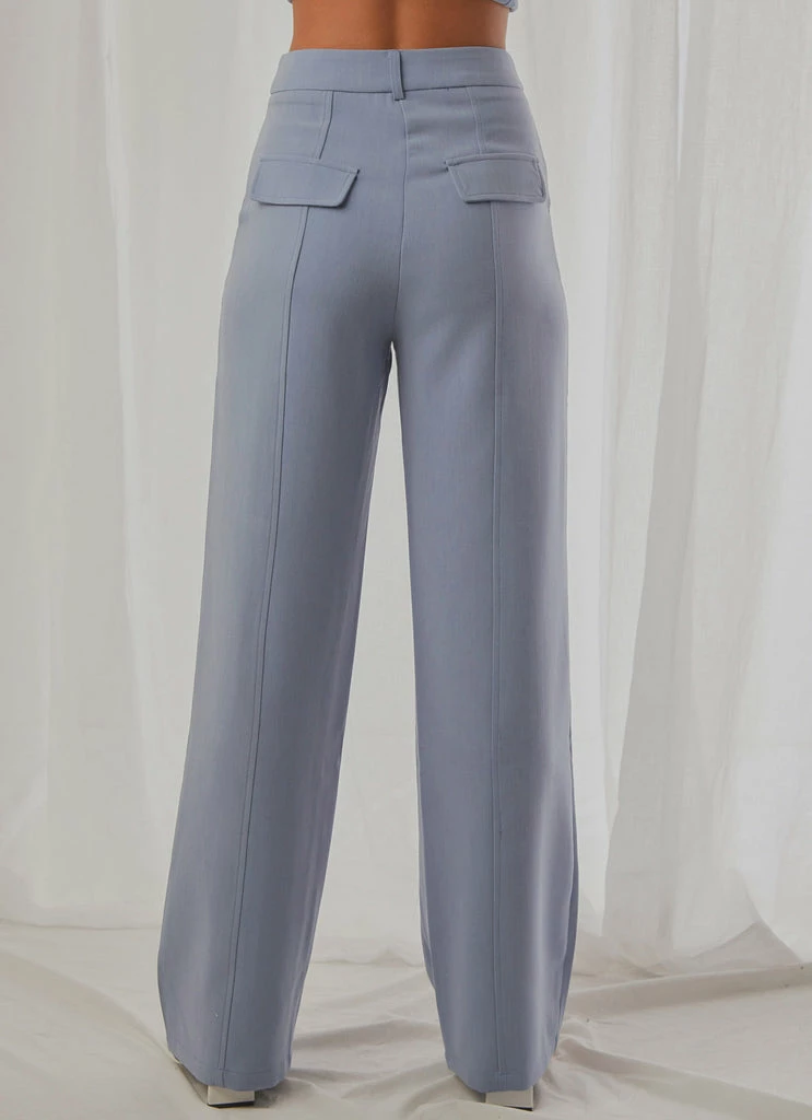 Best of blue. Welcoming the Adelaide trouser, cut from a muted bright blue fabric this wide-leg design sits high on the waist and falls in a structured silhouette. Accentuated with seam and pocket details, style with the Adelaide top and blazer.