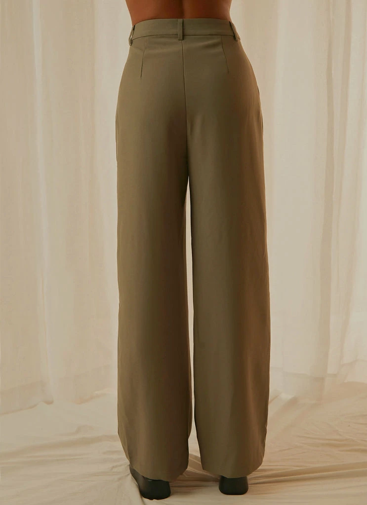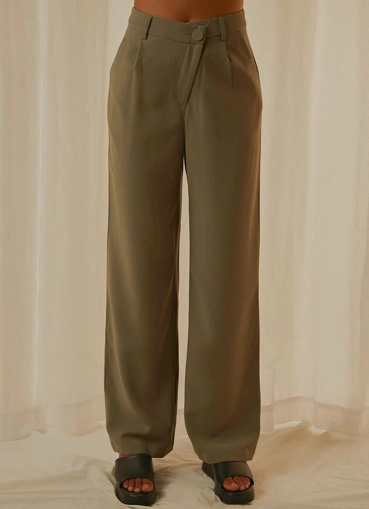 Mix up your tailoring with our Archer trousers. Crafted in a muted khaki with an elevated asymmetric fly, these are anything but average. Cut with a flattering high waist and wide leg, pair with the Archer blazer and heeled sandals to own the office.