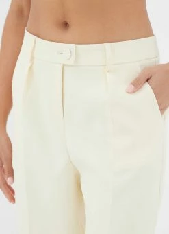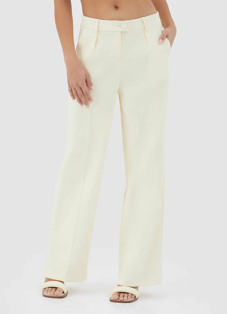 Step into springtime with the Cervo trouser. A classic wide leg silhouette in a slouchy light yellow fabric, the waist sits just above the hip. Designed with work in mind style with the matching blazer for a sharp look. Adding trainers for every day,