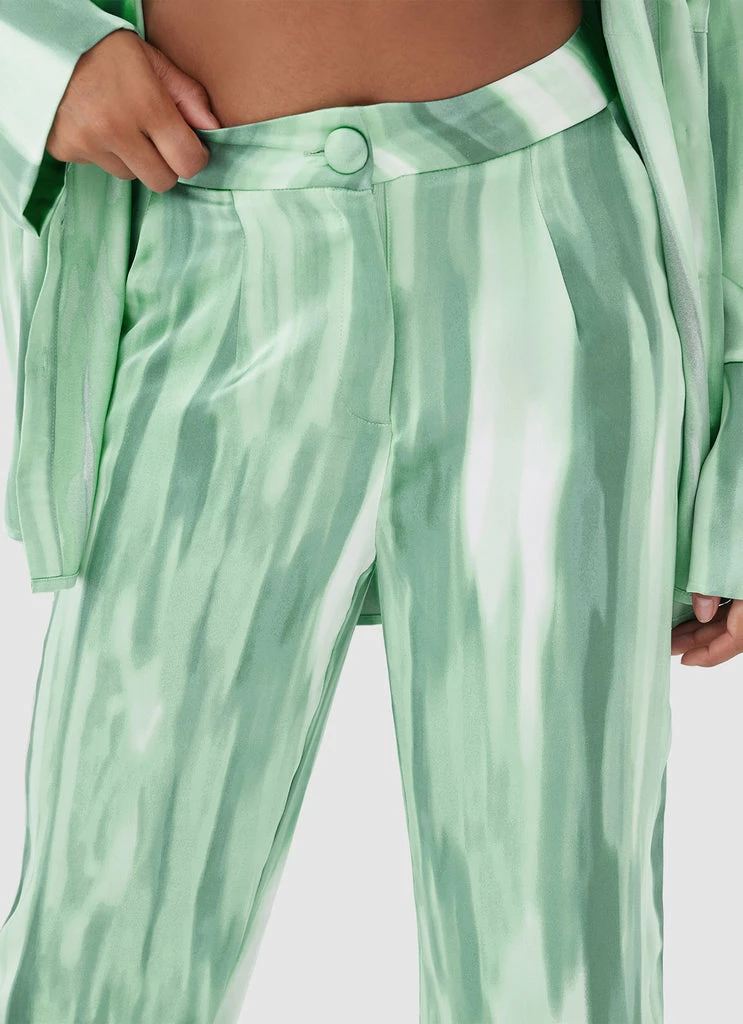 A style that makes a statement. Finished in this season’s bold prints, the Norma trouser has been brought to life in a dyed green watercolour effect for a vibrant design. Co-ordinate with the matching Norma trouser or wear with a bralet and sandals.