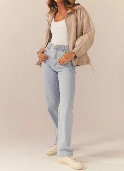 This flattering high-rise, straight-leg jean is easy to wear all year ’round. Featuring a relaxed fit and a light blue vintage inspired wash, it’s a great everyday jean that can easily be dressed up or down. Add a tucked-in graphic tee and chunky sneakers for a cute day look or team them with a lace bodysuit and heeled sandals for a polished finish!