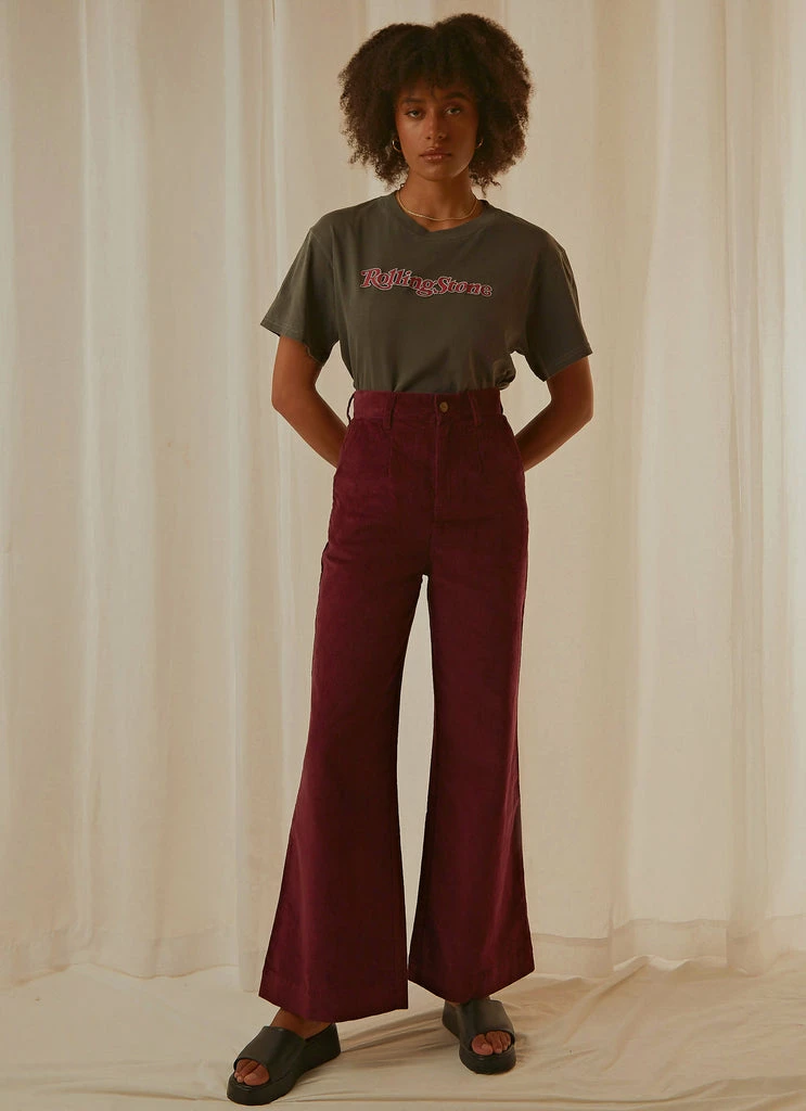 Inspired by the iconic 70s flare, these pants offer a super high waisted silhouette with an exaggerated flared leg. With all the trimmings you know and love; dual side pockets, back patch pockets, belt-looped waist, and Afends paper patch. Everyone needs a pair of Maisie’s in their life.