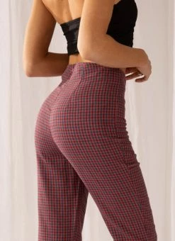 These high waisted pants check all the boxes. Following our classic high-waisted silhouette, these slim-fitting pants offer a seamless design with an invisible side zip entry. In the eco blend of hemp and tencel, these pants are lightweight, breathable and add a pop of colour in our custom red check print.