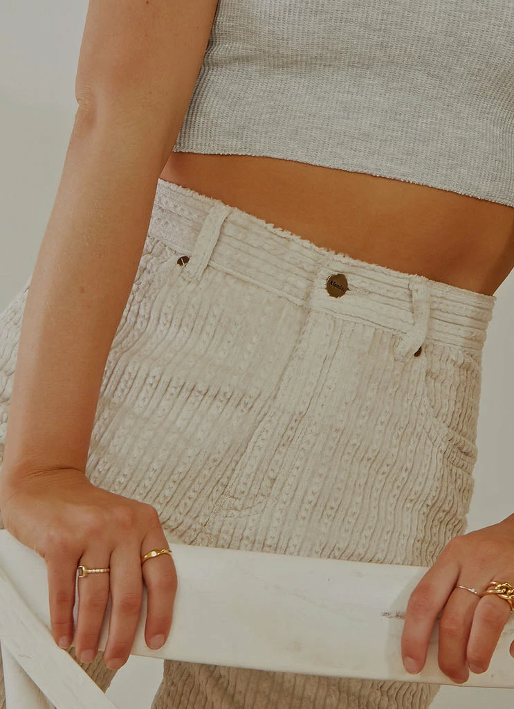 Our star girls, everyone’s favourite Shelby pants, the shape that has certainly earned its place in our core collection, is back in a specialised 3.5 wale jacquard corduroy with a unique textured form and luxuriously soft feel.