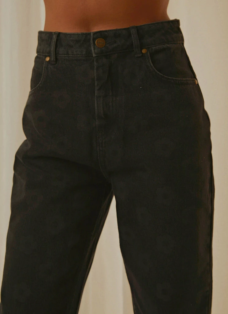In Afends’ classic Shelby silhouette – these jeans offer a fitted high rise waist and wide-cut leg. Featuring a belt-looped waist, brushed gold hardware, four pocket combo and signature Afends paper patch.