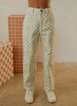 A wardrobe staple every cool girl needs. The California Pant are made of stretch cotton denim and has a soft checkered print in Sage.