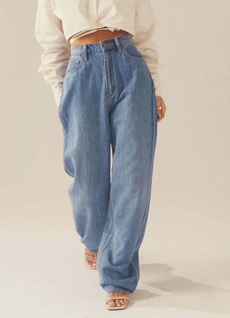 Our most popular new fit the High Baggy is the ultimate relaxed jean. Featuring a super high rise with a fitted waist that falls into a relaxed body and full leg length profile. We love them paired with a cropped tank and your favourite platform mules.