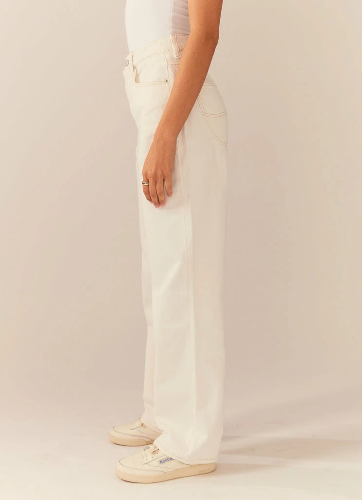 Our favourite baggy fit is now in a bright, vivid white ORGANIC cotton denim. The High Baggy Jean is our super high rise relaxed baggy jean with full leg. Featuring front pleat style for a true baggy silhouette.
