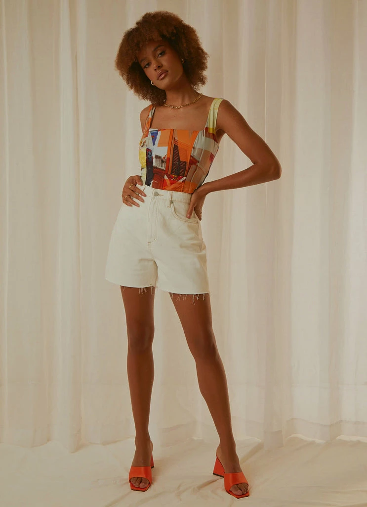 Our best-selling High Moms Short is a super high rise short with a modest leg length. It hugs the waist but is more relaxed through the seat and leg so it’s super comfy to get around in all summer long. Our favourite short is now in a bright, vivid white ORGANIC cotton denim. Organic Cotton’s production sustains the health of soils, ecosystems and people by using natural processes rather than artificial inputs. Importantly organic cotton farming does not allow the use of toxic chemicals or GMOs (genetically modified organisms). Instead, it combines tradition, innovation and science to benefit the shared environment and promote a good quality of life for all involved.