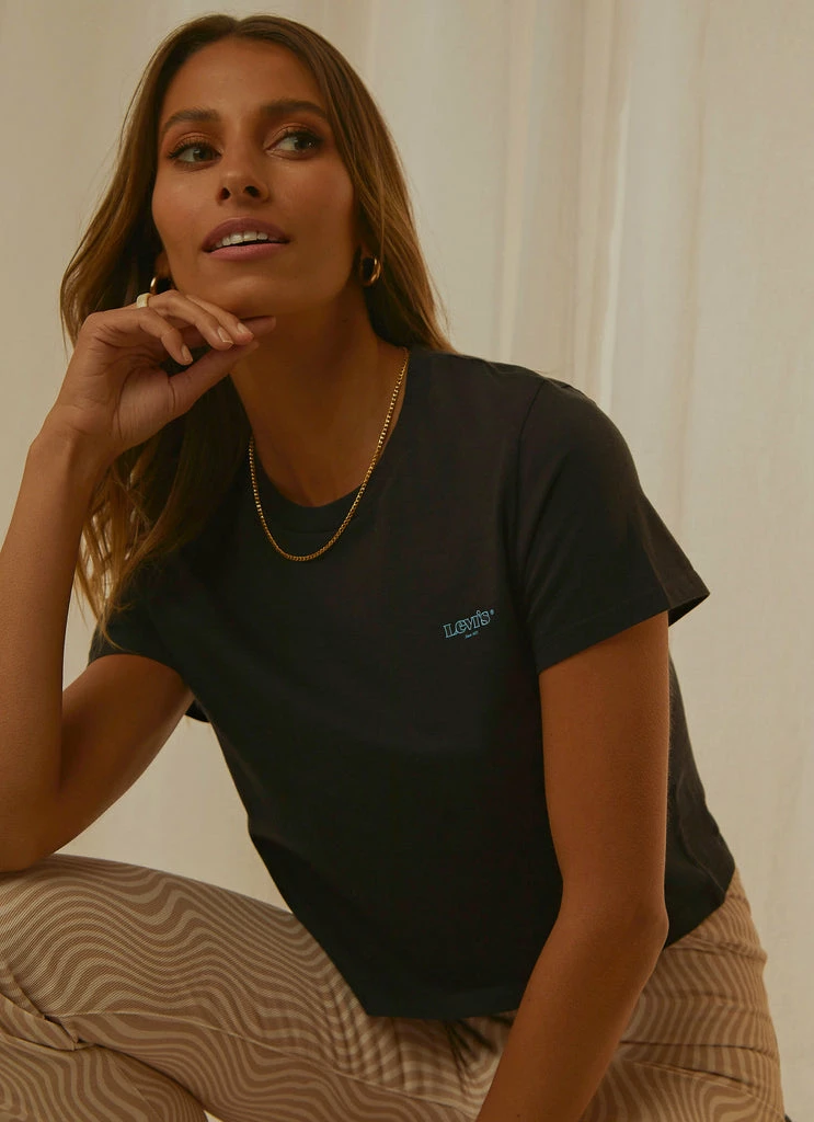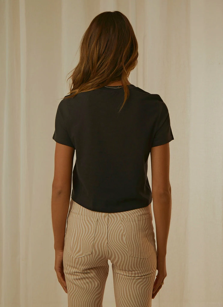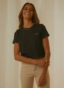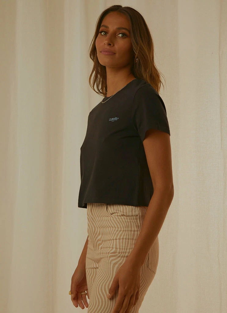 A soft, cropped logo tee in a relaxed, slightly boxy fit. Features a modern vintage logo at the chest.