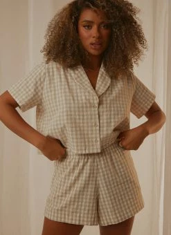 The Clive Check Short is crafted from 100% cotton with a lightweight handfeel. Constructed in a natural gingham check, this silhouette is a relaxed fit. Features include an encased elastic waistband, side seam pockets and back patch pockets. Pair with the Clive Check Shirt for a coordinating look.