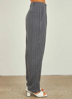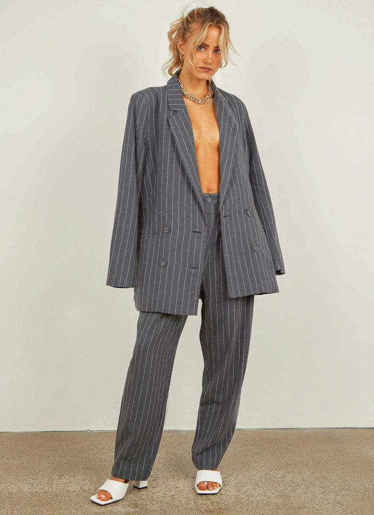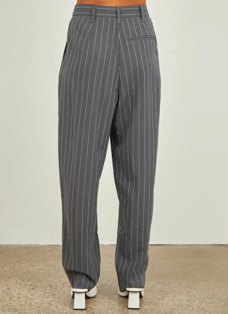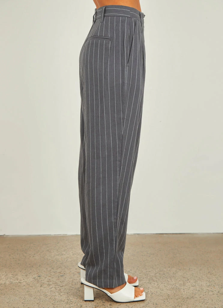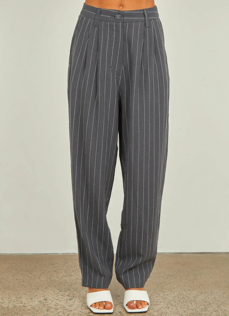 The Finley Pant in Navy Pinstripe is a classic tapered leg tailored pant. Crafted in a linen blend, it features a high waist with an elasticated waistband, in seam pockets and cropped hem. Pair with our Finley Pinstripe Blazer for a matching suit set.