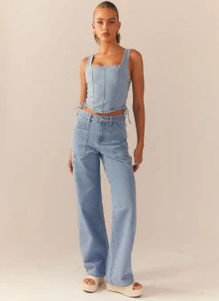 An absolute must have, the Backstage Pass Denim Low Rise Pants are a carpenter style pant made in a denim with a straight, wide leg fit and designed to be worn lower on the hips. The perfect jean to elevate any outfit.