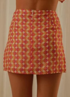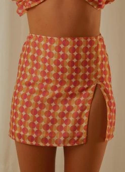 The Daytona Mini Skirt is the retro inspired piece your wardrobe needs! Featuring a geometric print in pink, orange and yellow and split on the left thigh you’re sure to have a good night on the town in this little number.