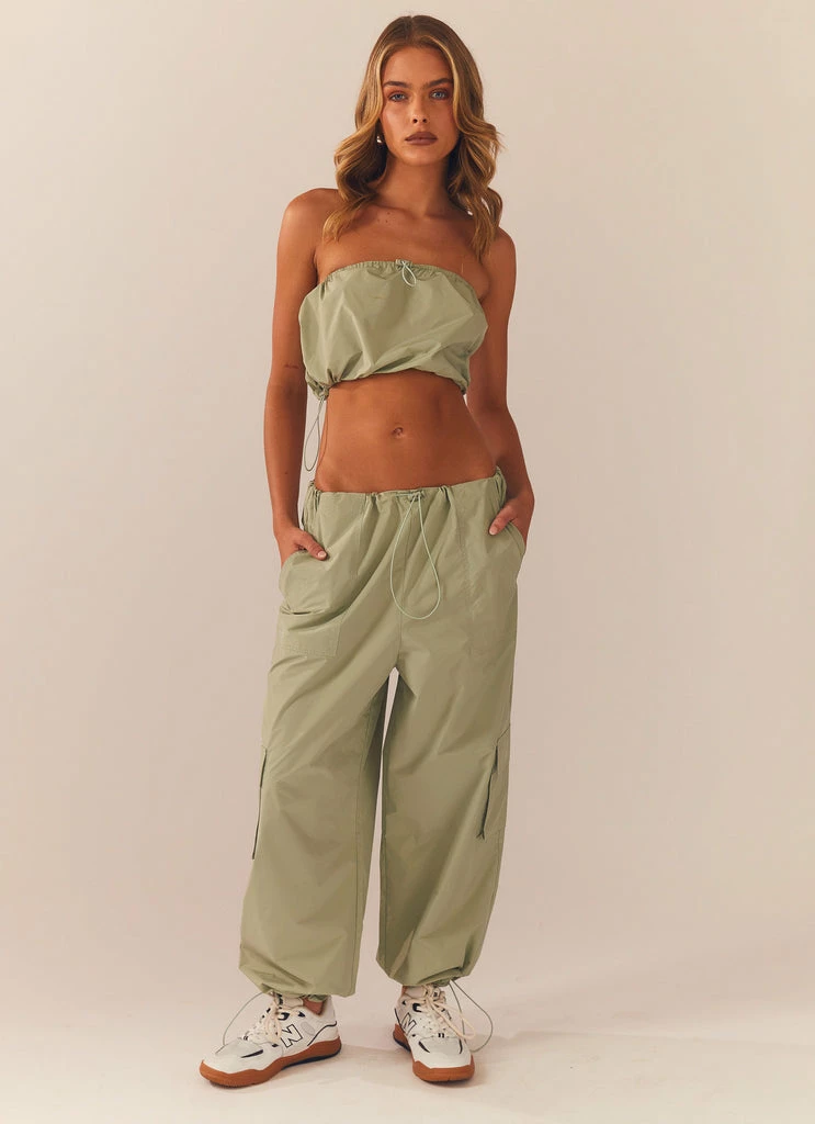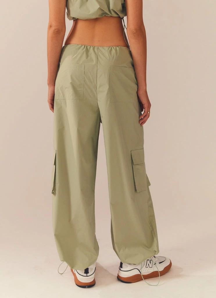 It’s giving 90’s and we’re obsessed!The Hacker Parachute Pants are designed to be worn lower on the hips and feature an elastic toggle drawstring with 6 pocket detailing. A wide leg pant finished with an elastic drawstring hemline to create the perfect parachute pant silhouette.