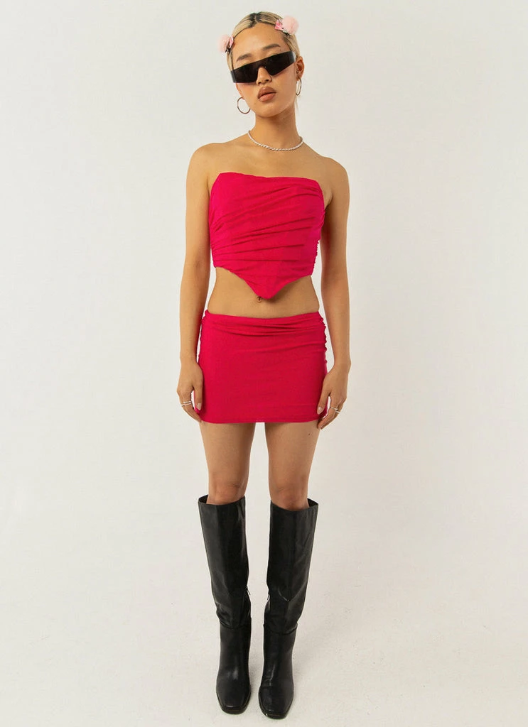 Major hotties wear the Hattie Mesh Mini Skirt! Crafted in super soft mesh over and designed to be worn lower on the hip, the Hattie Mesh Mini can be paired with any crop or complete the pretty in pink set with the Sienna Mesh halter Top.