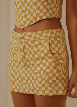 Hello Hottie! The Luisa Mini Skirt is the perfect retro inspired piece for your wardrobe featuring a warped check print in yellow. The perfect pair with the Luisa Bustier Top, you’ll be sure to turn heads in this little number!