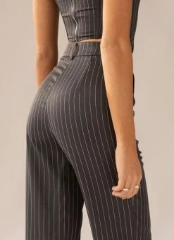 We’ve got the answer to all your pant prayers! Say hello the the Mia Suit Pant. Designed to be worn high on the hips in our soft Charcoal Pinstripe Print featuring 2 pocket detailing at the front and back darts for tailoring. Elevate your look and style it with the Mia Suit Bustier, layered with the Mia Oversized Blazer.
