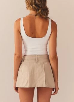 Preppy in Peppermayo! The Mooncharged Mini is a pleated micro mini with a wide fastening waistband and detachable belt. We love it styled with a white crop and layered with the Park City Windbreaker.