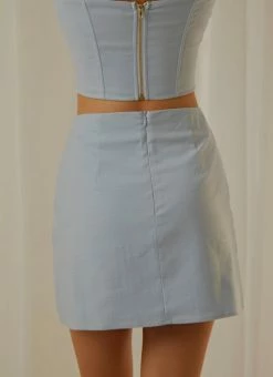Our Rooftop Drinks Mini Skirt pairs back perfectly with the Pastel Skies Bustier Top, the perfect look for sunset cocktails overlooking the ocean.
