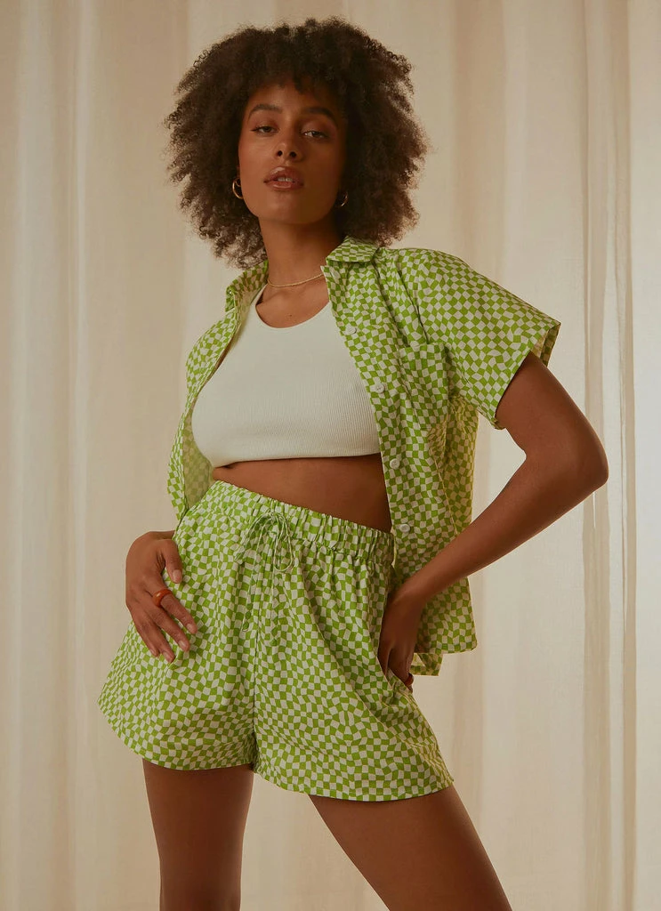 Your weekend wardrobe just got a lot cuter! Say hello to the Seventies Groove Shorts , pair these with the matching Paloma shirt, sneakers and vintage inspired accessories for your next beachside coffee date.