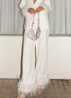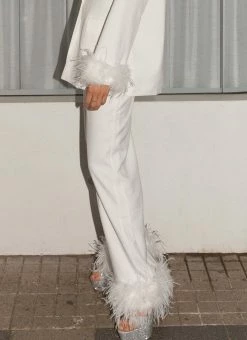 Shake it like a polaroid picture! Be the life of the party in the fun Shake It Off Feather Pants, designed to be worn higher on the hips with a wide leg fit and hemmed with feathers. Made for the Peppermayo party girl! Complete the look with the Shake It Off Feather Blazer, heeled mules and simple jewellery.