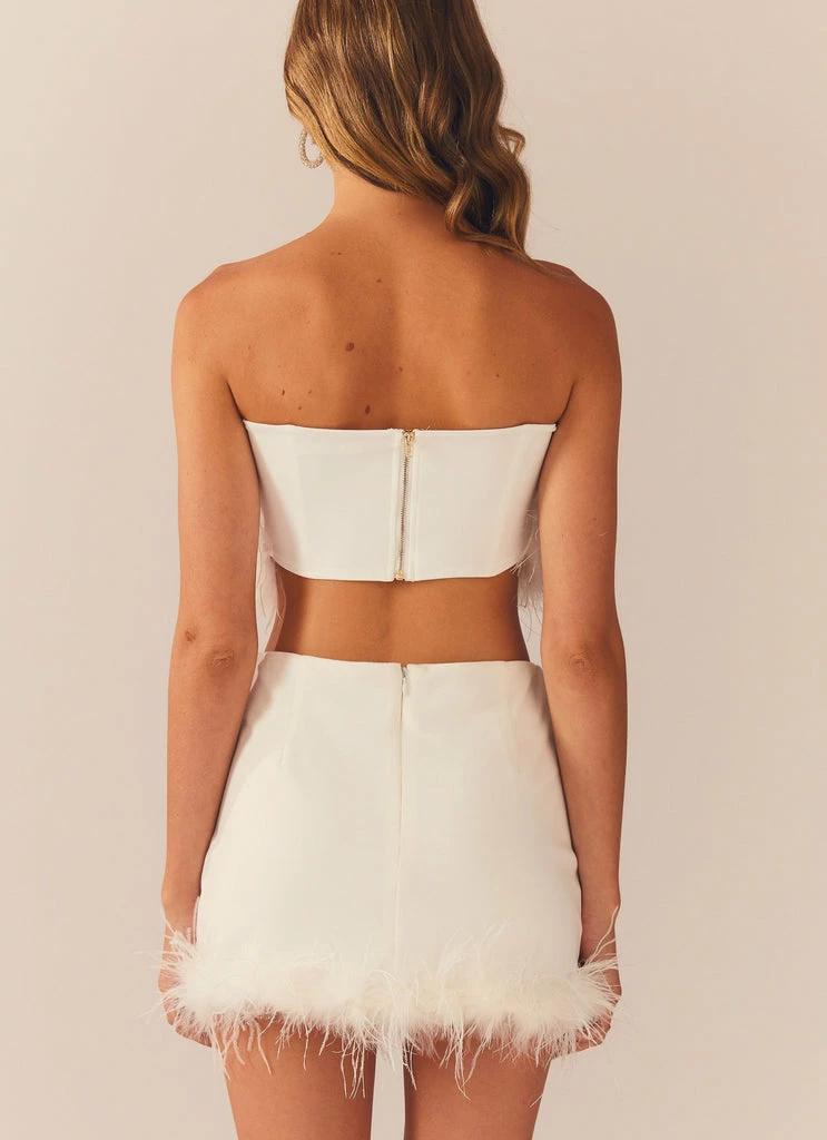 Cue the party playlist, pop the champagne and get ready to dance the night away in this lil number! The Night Is Ours Feather Crop pairs back perfectly with the Lucia in Love Skirt and you’ll be sure to turn some heads.