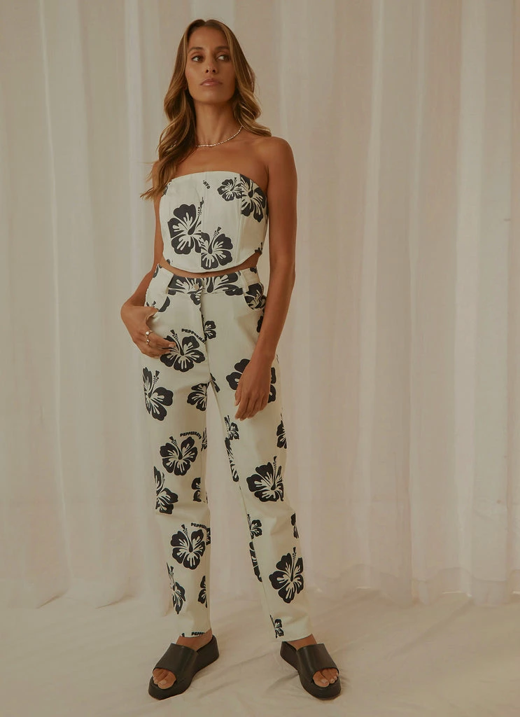 90’s surf vibes all the time in the super fun Tropicool pants! Pair them with the matching Oahu Bustier Top and chunky sandals!