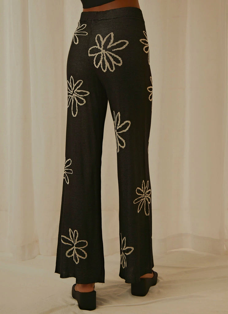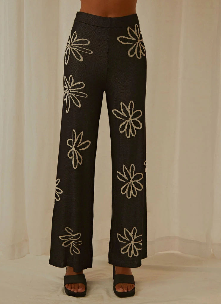 Put the jeans away for the day. Our Floral Takeover Knit Pants are as comfy as there are cute. Pair with a cropped baby tee and chunky sneakers.