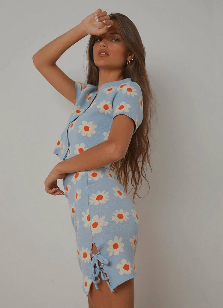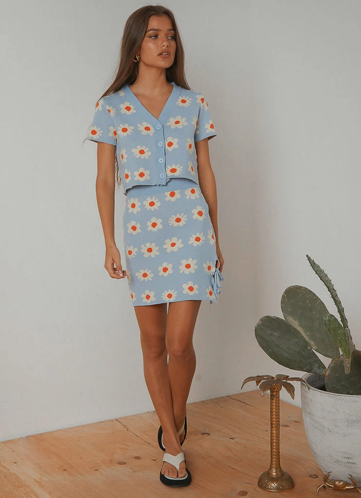 Get your floral fix in the Sunkissed Knit Mini Skirt and matching Free Spirit Top. The cutest little set, we love this paired with heeled mules and your fave mini bag.