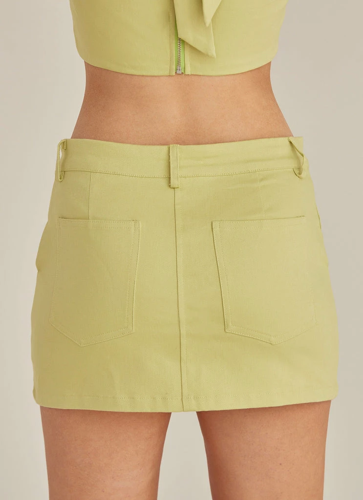 Our love language is dressing cute! The Feel The Sun Drill Mini Skirt is the ultimate summer staple, designed to be worn low on the hips, a 4 pocket design mini skirt that pairs back perfectly with the Destination Bustier Drill Top or wear it everyday with a white tank and mules.