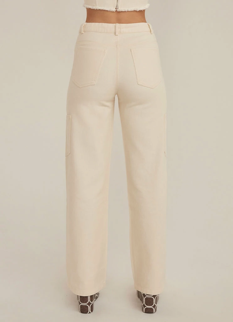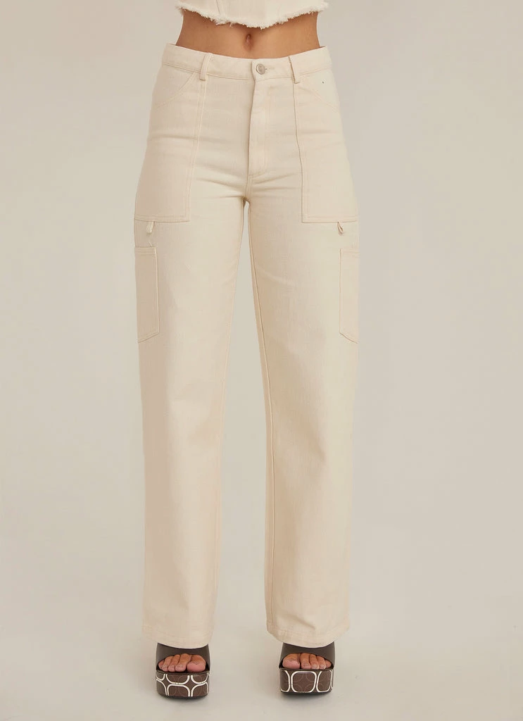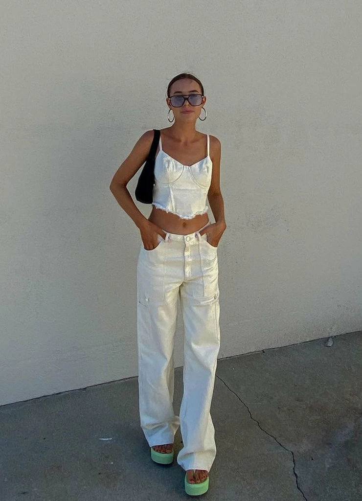 So on trend it hurts! Postcard Drill Carpenter Pants have been crafted in ivory drill are designed to be worn higher on hips and feature 6 pocket design. Day dressing done right paired back with a basic white tank or complete the look with the Sundown Vibes Drill Bustier.