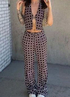 The ultimate boss babe look! The Romeo Pant features a groovy geometric print with 2 pocket detailing and fastened waisted with belt loops. Bring the heat and pair them with Cobain Crop Shirt and mules.