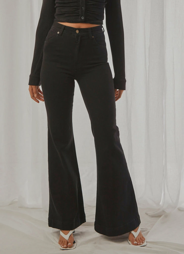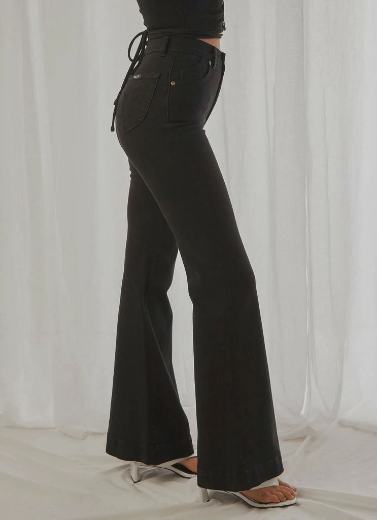 The Eastcoast Flare is an iconic Rolla’s look and celebrity favourite, worn by the likes of Bella Hadid and Sofia Richie. The secret is in our super soft, high quality denims and perfected fit. With its slim shape and high rise, the Eastcoast Flare hugs in the right places and elongates the leg while the styling keeps it classic and low-key for an effortless look. Featuring our Rolla’s back pocket that is uniquely shaped to flatter and stitching that is a brand signature.