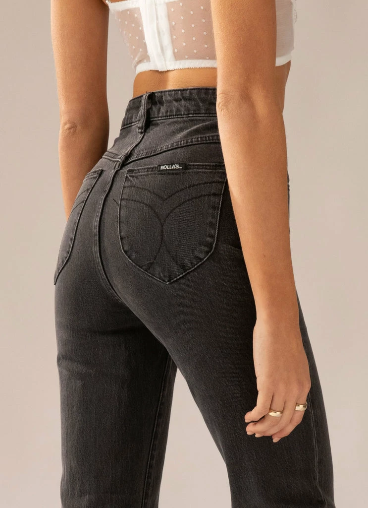 The Original Straight Jeans by Rolla’s are designed with a straight leg profile and come in a black colourway. This style is high rise and features five pocket styling, belt loops, branded hardware and a zip fly with button closure. This denim is designed to be worn tight and will soften to shape the body with wear for a natural, effortless fit.