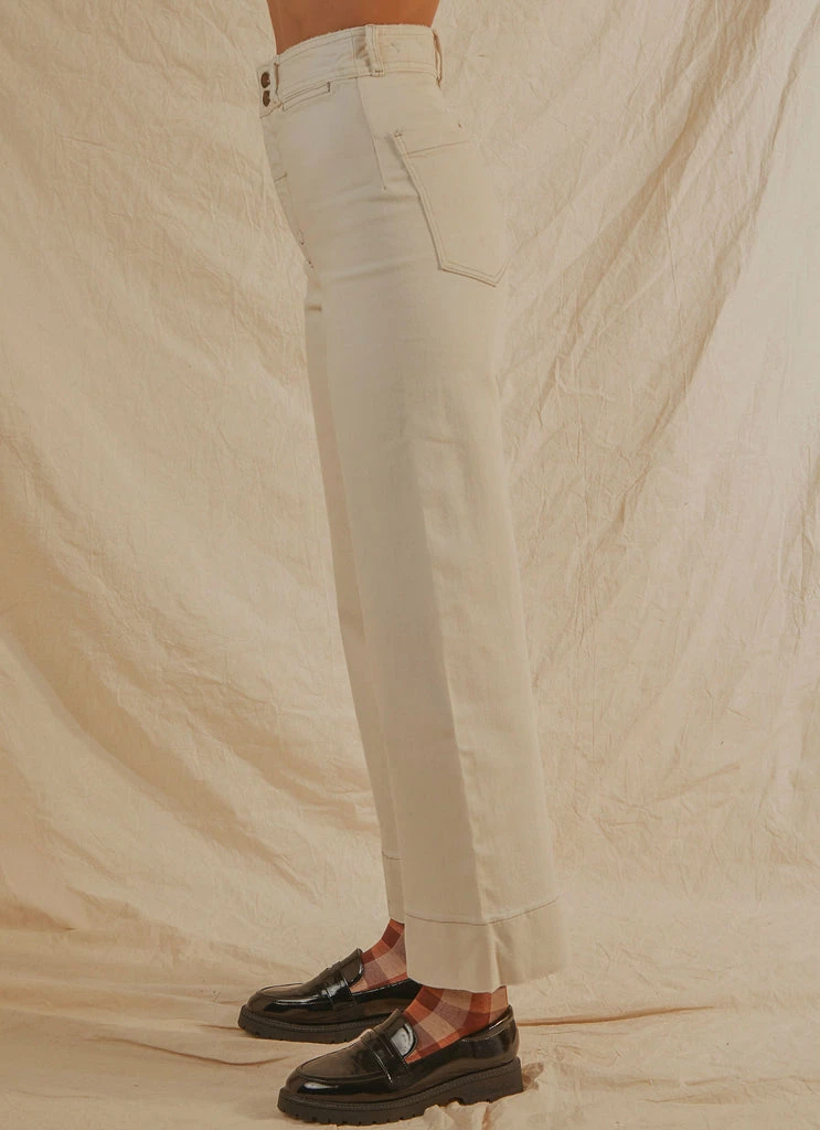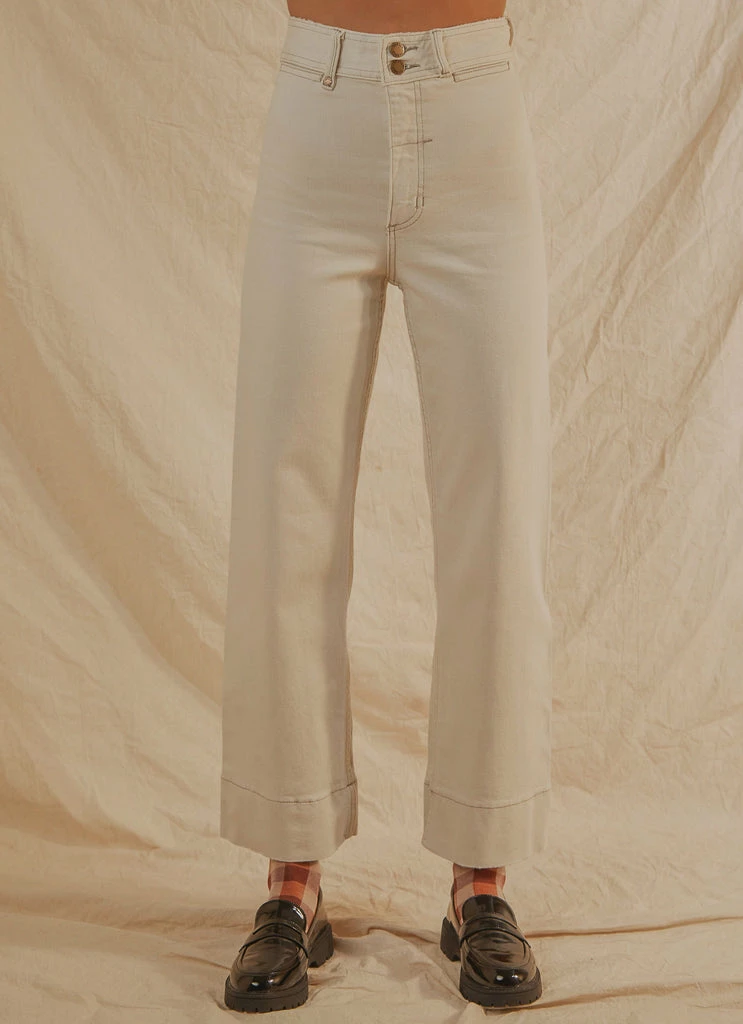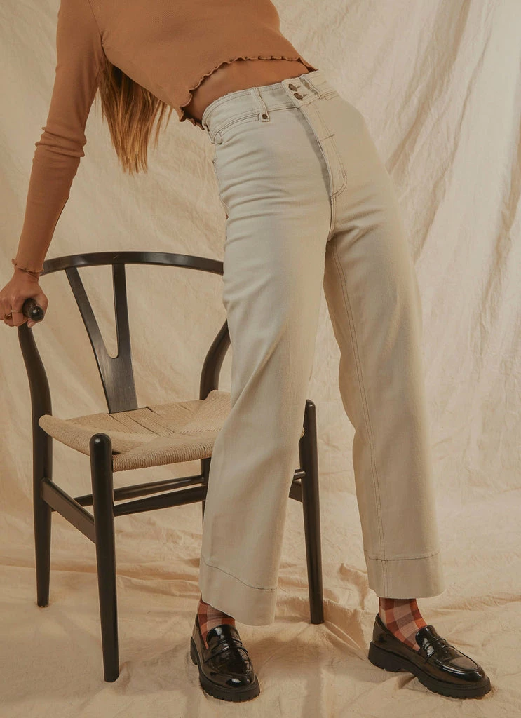Our best-selling pant silhouette just got better. Now available in a comfortable stretch denim, the Belle pant is an ultra high waisted wide leg jean with 70’s appeal. Featuring a slightly cropped length with a wider hem opening, the Belle Jean fits snug across your hips. Our most flattering jean ever.