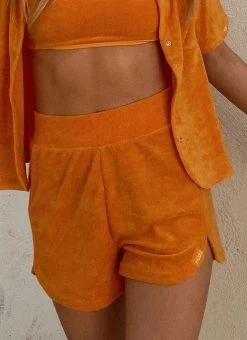 The Cabana Terry Shorts are perfect paired with the Holiday Terry shirt and Sunbather Terry Crop, chunky flatform sandals and the Sundial Terry Bucket Hat for your next beach day look.