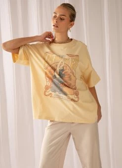 This super oversized fit tee is our biggest yet. This 90s skater inspired fit can to be worn layered over long sleeve tees and skivvys, or with tights and stomper boots for the ultimate 90s grunge look. This nostalgic graphic is inspired art nouveau style band posters.