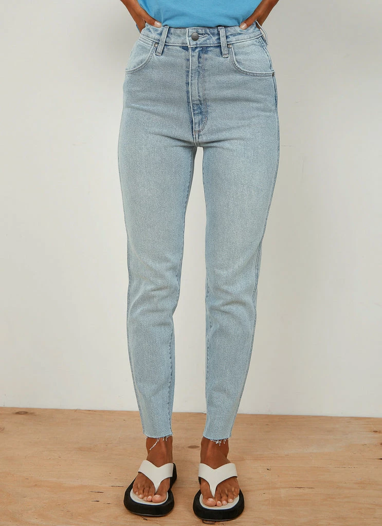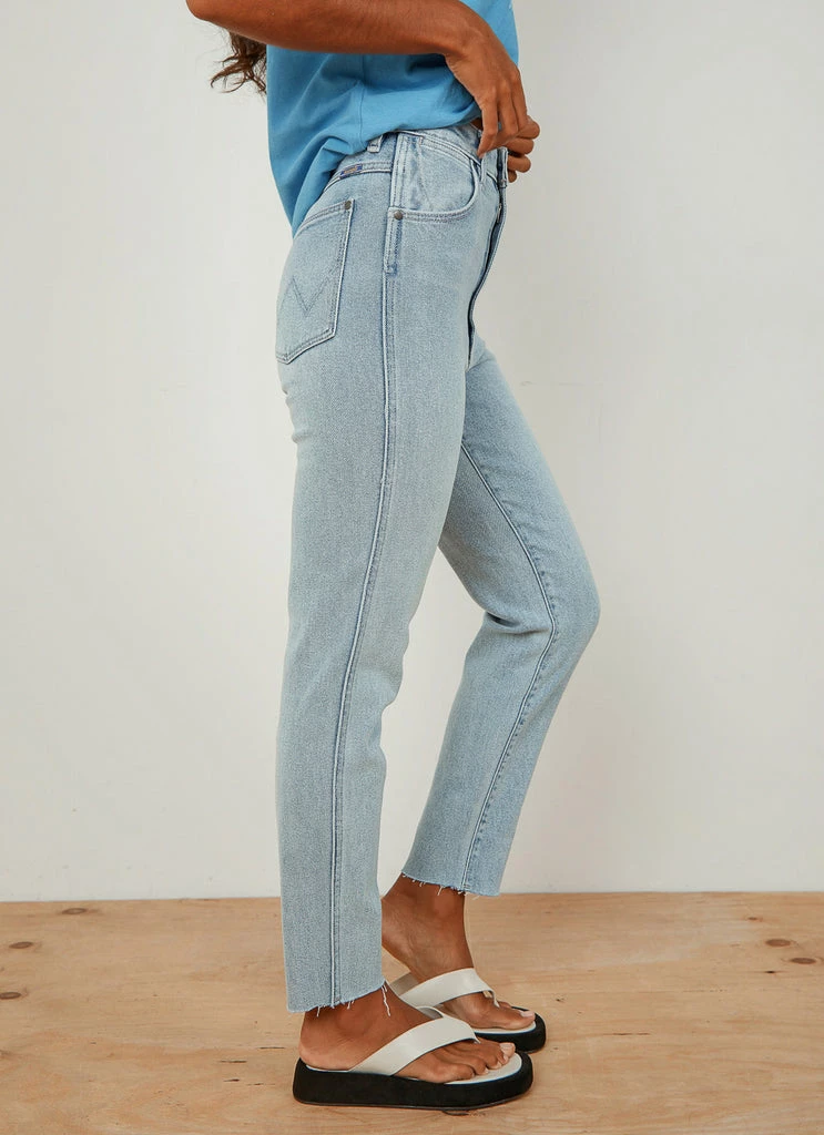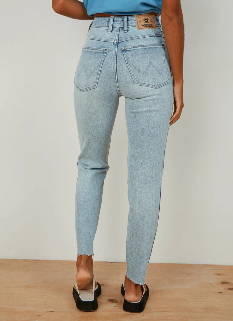 The Tyler fit is Wrangler’s high waisted “Mom” jean that’s relaxed through the seat with a tapered leg. Designed to fit a little loose with wear with cuffs rolled up.